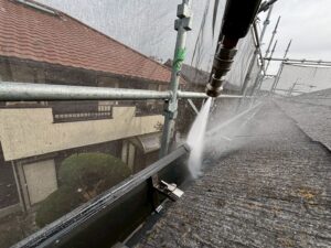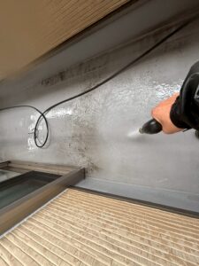 長年蓄積した汚れや、旧塗膜、苔やカビをしっかりと落としていきます🚿